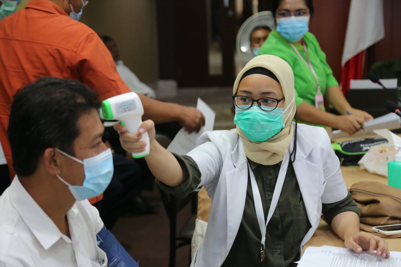 Setelahnya, pegawai akan melakukan proses screening, yaitu mengukur tekanan darah, suhu tubuh, serta konsultasi adanya riwayat penyakit tertentu yang diderita oleh pegawai yang memiliki kontra indikasi terhadap vaksin tersebut.