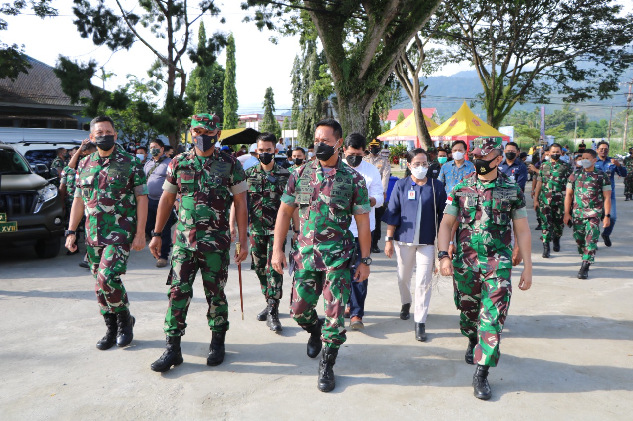 Setelah dari Lanud Silas Papare, Panglima TNI meninjau pelaksanaan vaksinasi Covid-19 di Lapangan Trisila Lantamal X Jayapura, dilanjutkan meninjau fasilitas penanganan Covid-19 yang dimiliki RS Marthen Indey, Kota Jayapura, Papua.