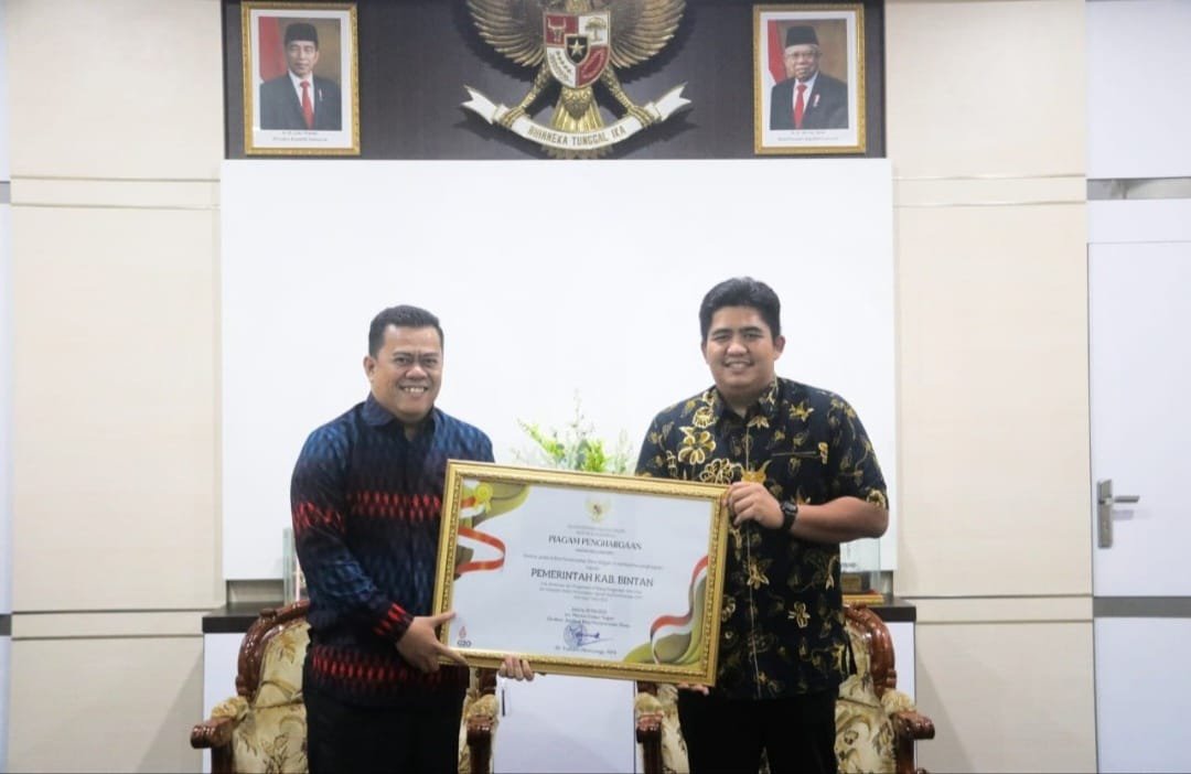 Plt Bupati Bintan Roby Kurniawan menerima piagam penghargaan, Senin (30/5). Foto: Diskominfo