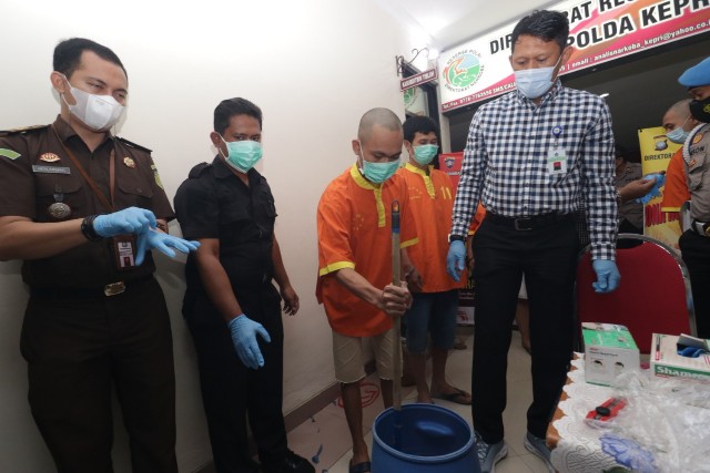 “Barang bukti Narkotika tersebut kita musnahkan dengan cara di larutkan kedalam air panas dan disaksikan langsung oleh para tersangka dan tamu undangan dari Kejaksaan, BNNP Kepri, BPOM, Perwakilan AVSEC bandara Hang Nadim, Advokat dan LSM Granat”. Jelas Kanit 1 Subdit 1 Ditresnarkoba Polda Kepri Akbp Raja Buntat Abbas.