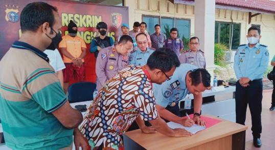 Polres Bengkalis Serah Terima 43 WNA Asal Bangladesh Korban Perdagangan Manusia Kepada Imigrasi. (Foto: Humas)