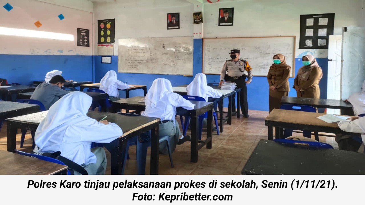 KEPRIBETTER.COM, KARO – Kasubag Humas Polres Tanah Karo Iptu Syahril Lubis bersama beberapa Personil melaksanakan Patroli Dialogis ke beberapa Sekolah khususnya ke SMA Negeri Kabanjahe dan SMP Negeri Berastagi , sembari mengawasi situasi Kamtibmas sekaligus menyampaikan himbauan disiplin protokol kesehatan pencegahan Covid-19, Senin (01/11/2021).