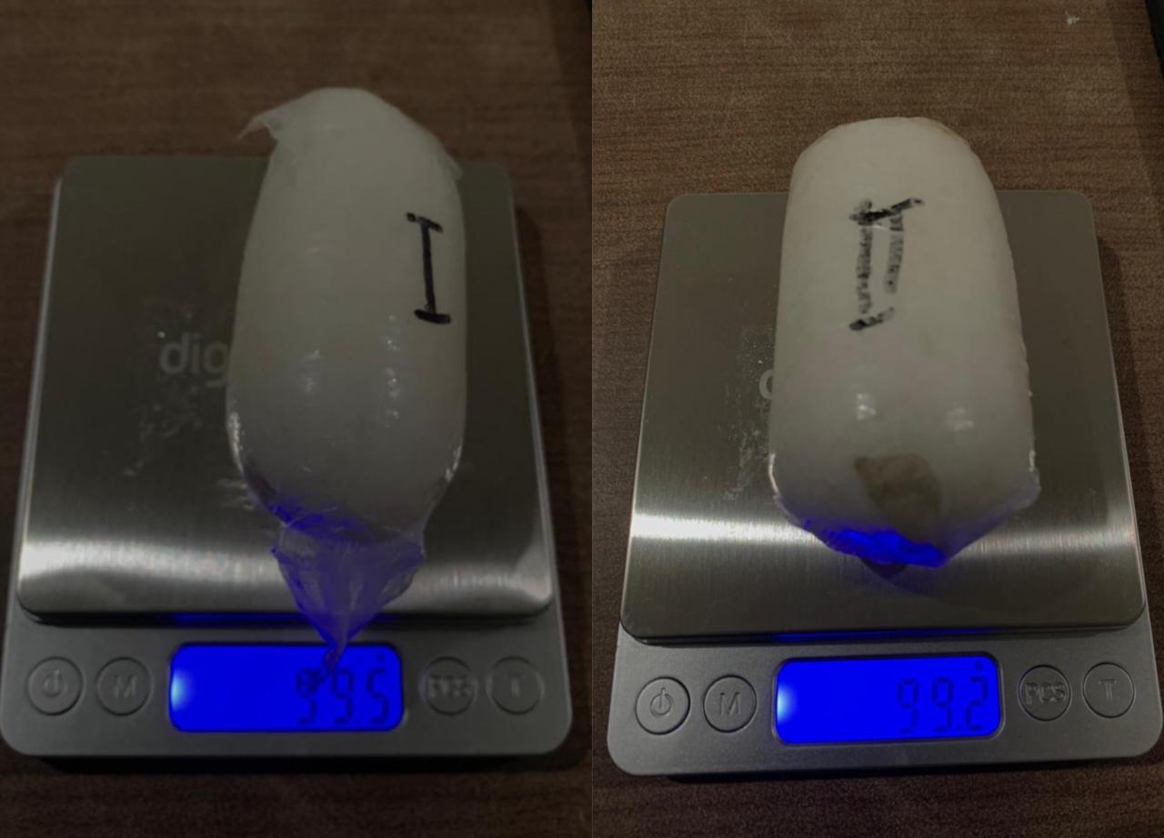 “Hasil pemeriksan ditemukan barang bukti satu bungkus sabu-sabu seberat 99,5 gram yang disimpan di paha bagian dalam (selangkangan), dan untuk memastikan lebih lanjut maka tersangka dibawa ke Rumah Sakit Awal Bros untuk dilakukan rontgen, dan ditemukan satu bungkus lagi sabu seberat 99,2 gram” jelas Rizki.