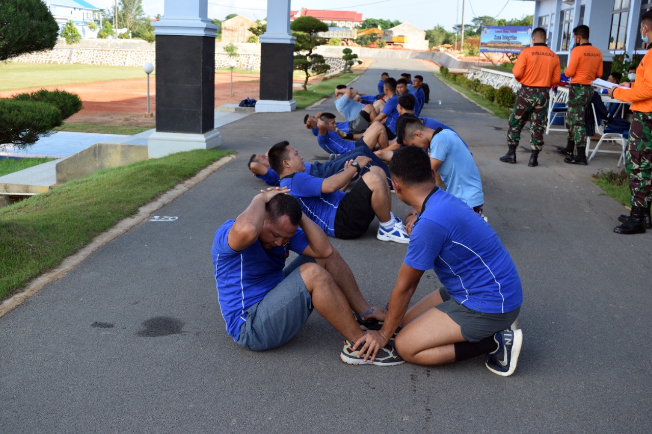 “Dalam pelaksanaannya, tes kesamaptaan diawali dengan pemeriksaan terhadap tekanan darah oleh Lettu Kes dr Aldo selaku Kakes (Kepala Kesehatan) Lanud Hang Nadim dan dilanjutkan dengan pemanasan atau perenggangan dipimpin oleh salah satu anggota Binjas Lanud,” terangnya.