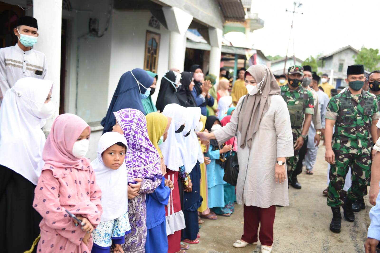 Ket foto: Dewi Kumalasari Ansar bersama Plt. Bupati Bintan Roby Kurniawan melakukan kegiatan safari Ramadhan di Masjid Al-hijrah Desa Mantang Besar, Kecamatan Mantang, Bintan, Selasa (5/4). Fot: humas