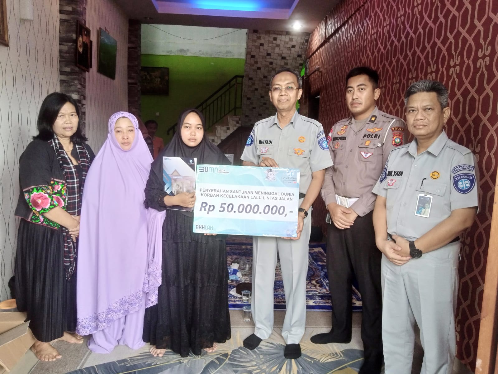 Dalam kurun waktu kurang dari 1 hari, Kepala PT Jasa Raharja Cabang Kepri Mulyadi melalui petugas Jasa Raharja langsung menyampaikan santunan meninggal dunia sebesar Rp 50 Juta melalui metode transfer bank kepada ahli waris korban yang mana adalah istri sah korban dimana hal ini sesuai dengan UU No. 34 PP No. 18 Tahun 1965 dan Permenkeu No.15 Tahun 2017.