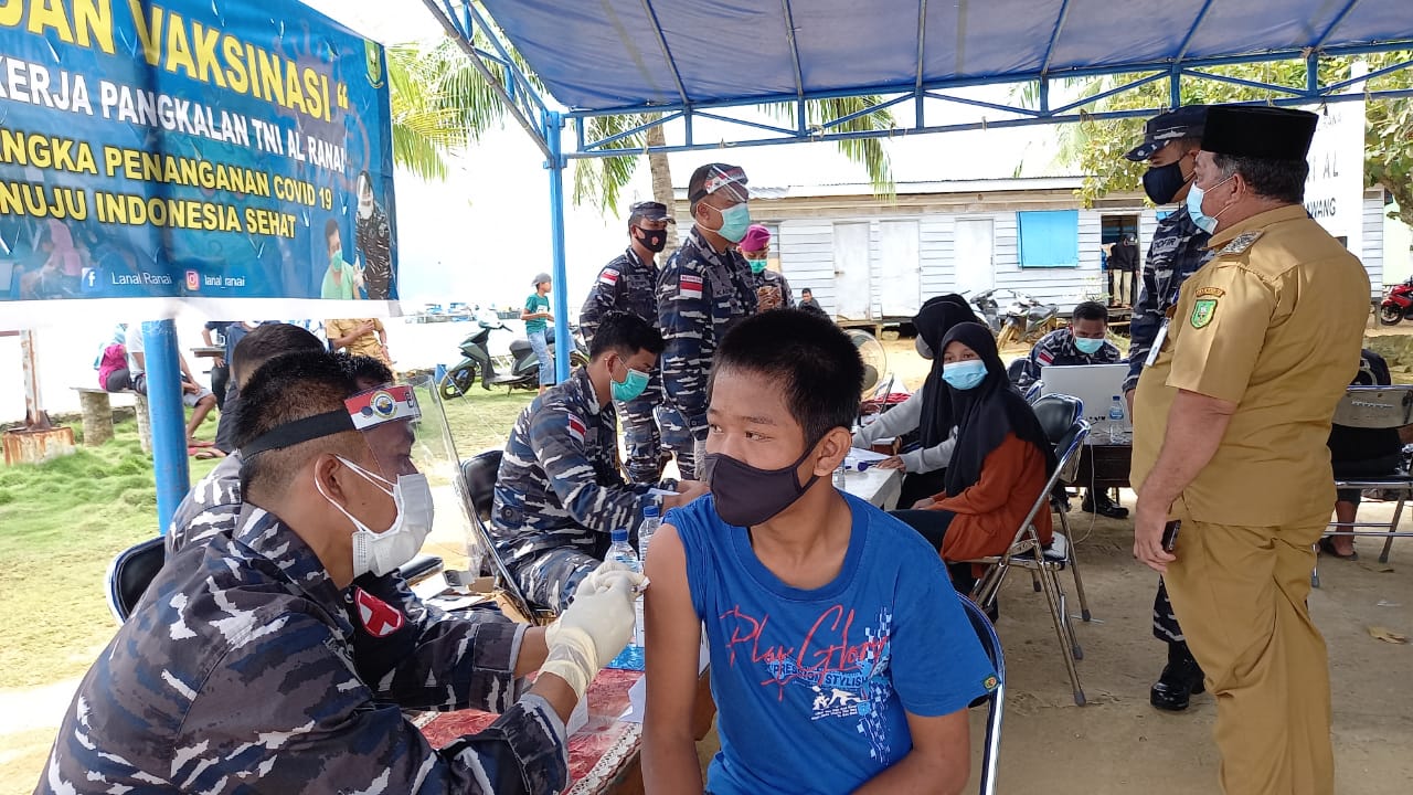 KEPRIBETTER.COM, NATUNA – Dalam rangka percepatan program vaksinasi pemerintah, Pangkalan TNI Angkatan Laut Ranai (Lanal Ranai) menyambangi masyarakat kepulauan di Desa Sabang Mawang Barat Kecamatan Pulau Tiga Natuna Kepualauan Riau, Selasa pagi (06/7/21).