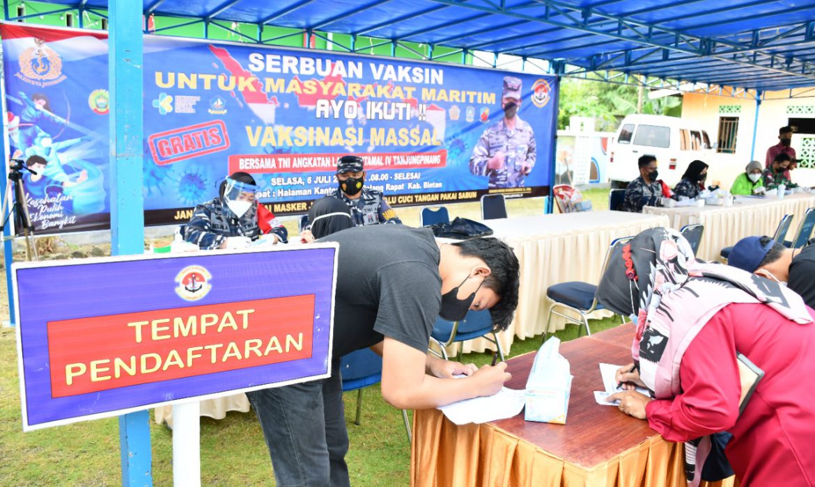 Lantamal IV sudah ke empat kalinya menggelar Serbuan Vaksin Covid-19 Untuk Masyarakat Maritim pertama di Pelabuhan Sri Bintan Pura Tanjungpinang pada tanggal 26 Juni 2021 dan yang kedua pada tanggal 1 Juli 2021 di pulau terpencil di Kampung Telang Kecil Kecamatan Mantang Besar Kabupaten Bintan, kemudian yang ketiga pada tanggal 3 Juli 2021 di Kelurahan Kampung Bugis yang merupakan Kampung Bahari Nusantara binaan dari Lantamal IV.