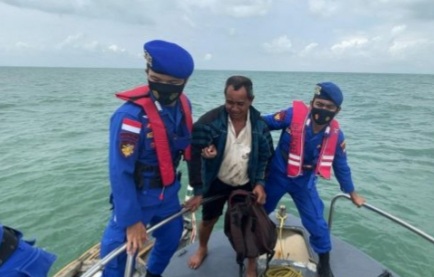 Dan sekitar jam 10.00 Wib Tim SAR dari Satpolairud menemukan Yaspandi nelayan Leho yang kehilangan kontak tepat di perairan Line 1 Indonesia.