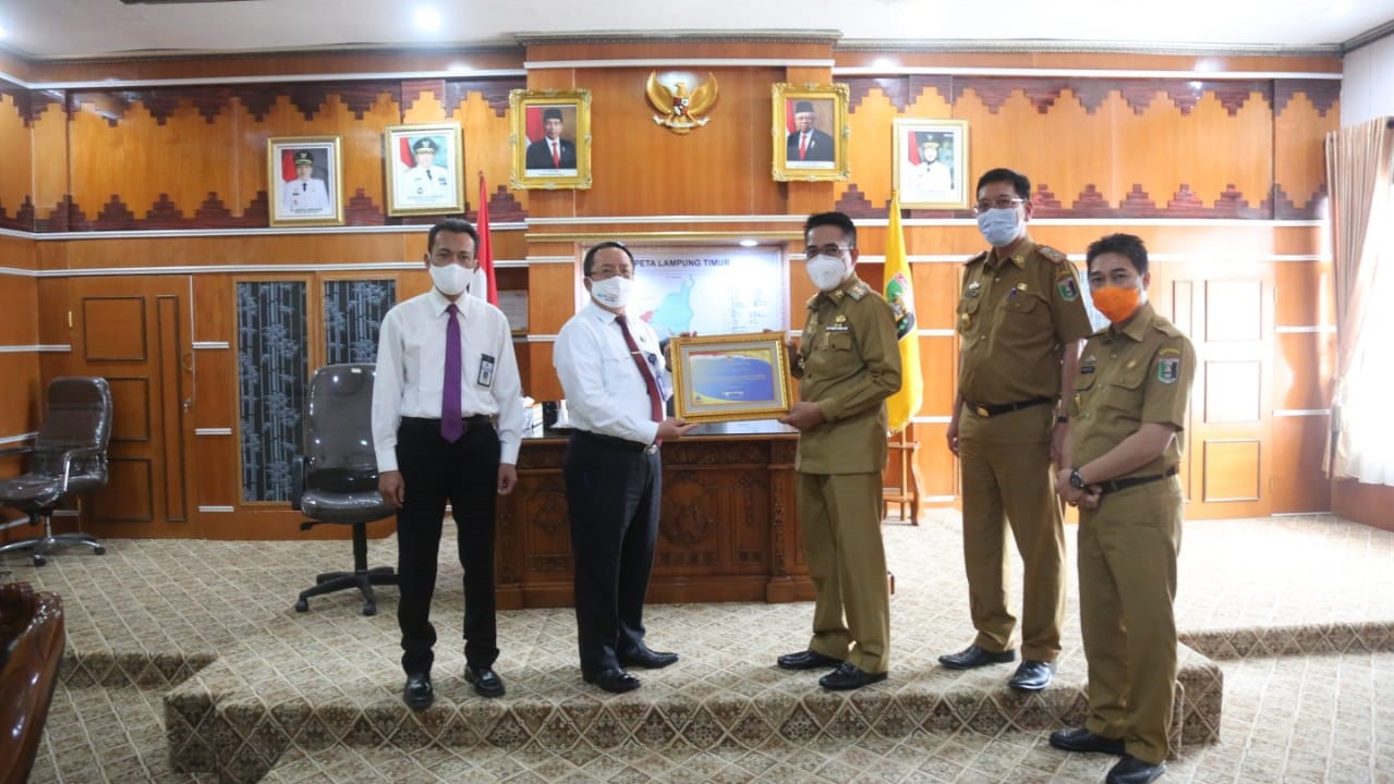 KEPRIBETTER.COM, Sukadana – Bupati Zaiful Bokhari menerima penyerahan piagam dari KPPN Metro di ruang kerja Bupati Lampung Timur, Senin (7/12/2020).