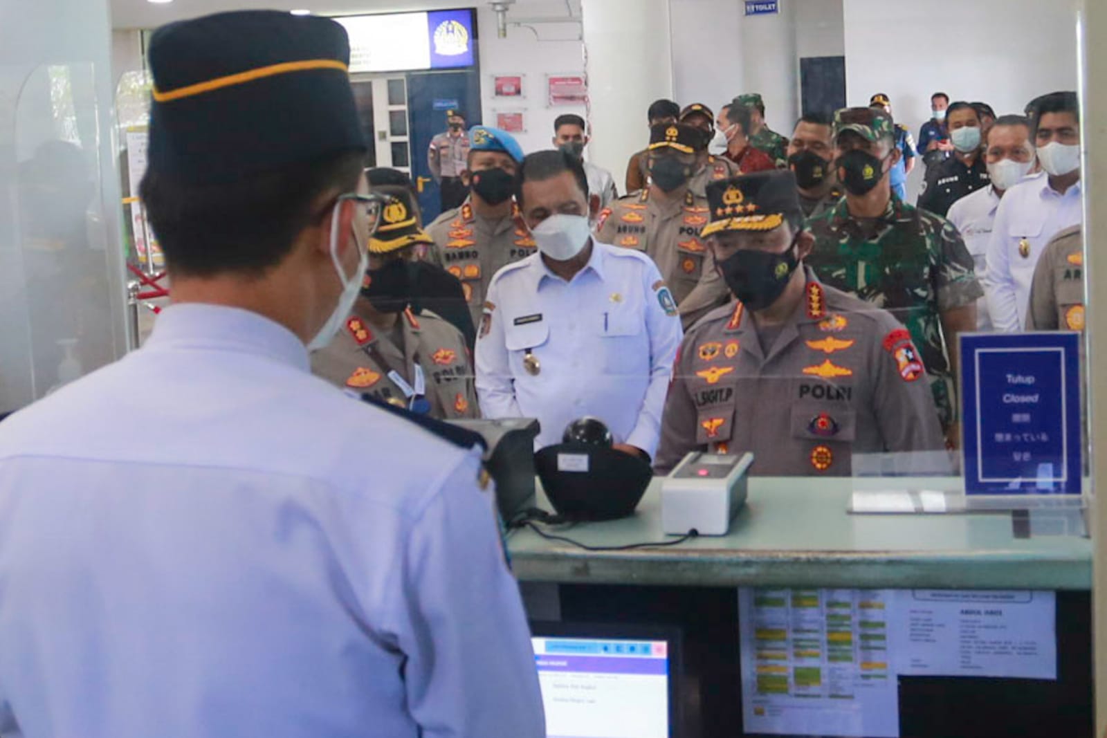 Ket foto: Kapolri Jenderal Listyo Sigit Prabowo bersama Gubernur Kepulauan Riau H. Ansar Ahmad melanjutkan agenda kunjungan kerja menuju pelabuhan Bandar Bentan Telani untuk melihat kesiapan protokol kesehatan alur penerimaan wisatawan dalam skema travel bubble Batam-Bintan-Singapura. Fot:humas