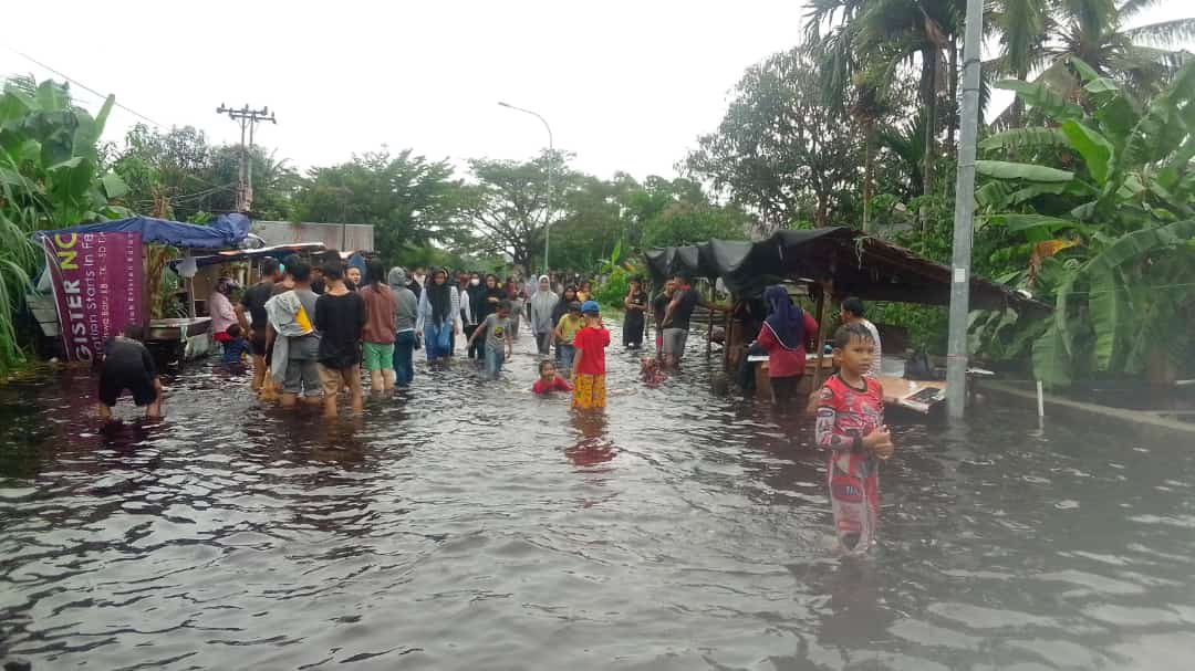 Warga saat bermain di lokasi banjir, Kamis (10/2). Foto: Kepribetter.com