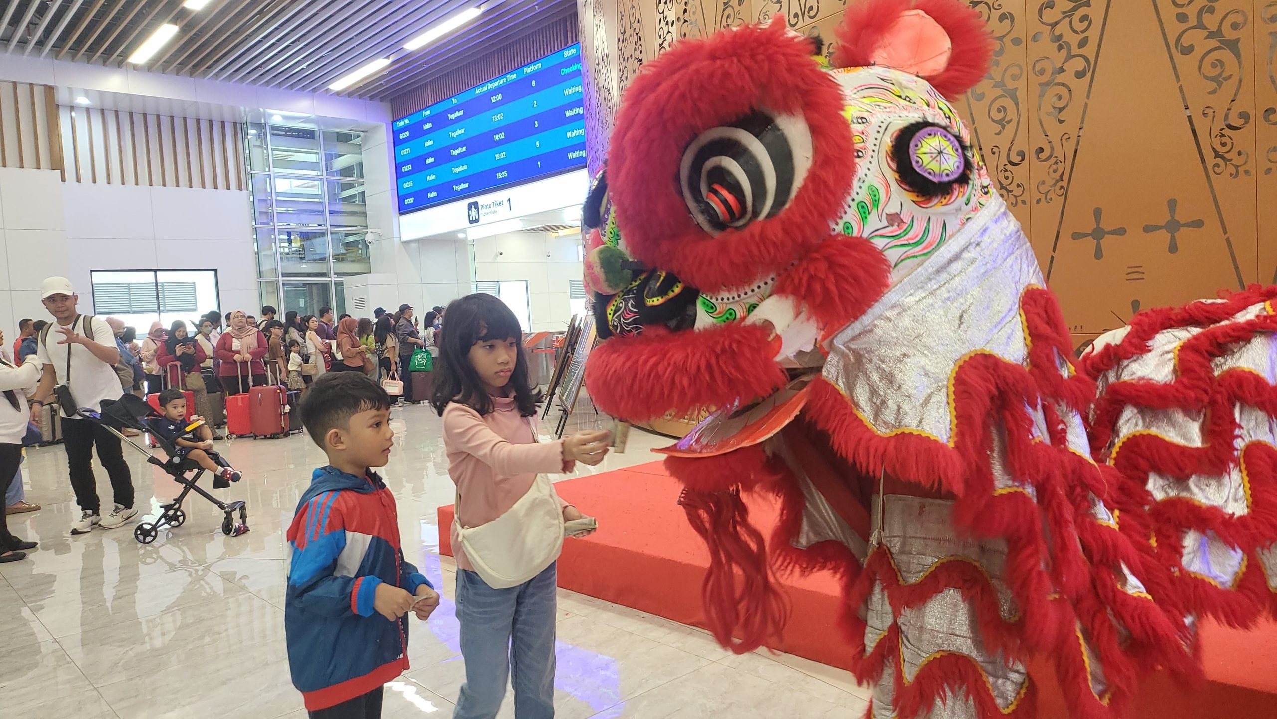 KEPRIBETTER.COM- Memperingati momen Tahun Baru Imlek, KCIC menghadirkan berbagai kemeriahan di area stasiun Kereta Cepat Whoosh pada Sabtu 10 Februari 2024.