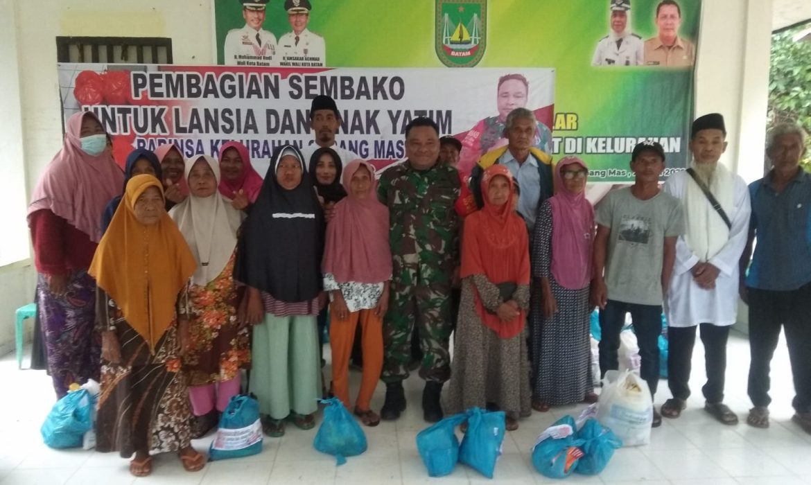 Anggota Kodim 0316/Batam Serda Petrus Tasid Jawa Bagikan Sembako ke Anak Yatim dan Lansia. (Foto: Markus)