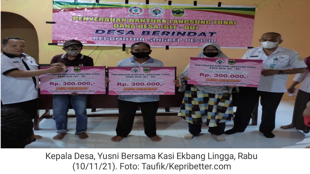 KEPRIBETTER.COM, Lingga – Penyerahan bantuan lansung tunai Desa bertindak di serahkan lansung oleh kepala Desa berindat dengan di dampingi oleh kasi ekonomi kabupaten lingga secara simbolis sebesar enam ribu rupiah (600.000) sekaligus per dua bulan.