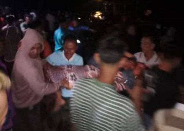 Sampan ditarik warga ke darat, didalam sampan terdapat Ikan yang masih segar, hp, kartu anggota Himpunan Nelayan Seluruh Indonesia (HNSI) atas nama Jais.