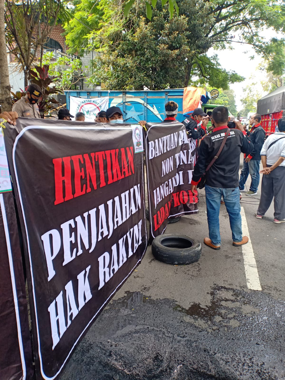 Dalam aksi unjuk rasa ini, para aktivis membentangkan sejumlah poster berukuran besar yang berisi kecaman terhadap Dinas Sosial, selaku pelaksanaan penyaluran bantuan sosial. Mereka juga membakar ban bekas, sebagai wujud kekecewaan terhadap polemik penyaluran bantuan pemerintah.