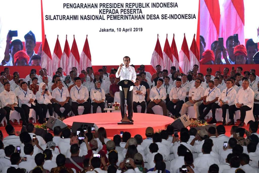 Hal itu disampaikan Presiden saat hadir dalam acara Silaturahmi Nasional Pemerintah Desa se-Indonesia yang digelar di Stadion Tenis Indoor, Gelora Bung Karno, Jakarta, pada Rabu, 10 April 2019.