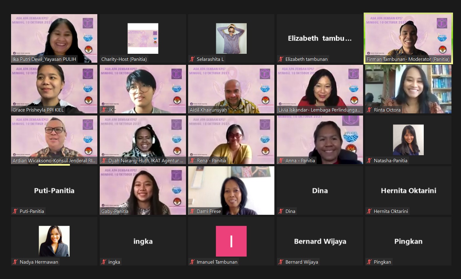 KEPRIBETTER.COM, Jerman – PPI Kiel bekerja sama dengan RUANITA – Rumah Aman Kita menggelar acara webinar bertema Kekerasan dan Pelecehan Seksual (KPS) yang diadakan secara daring pada Minggu, 10 Oktober 2021 dan diikuti oleh puluhan Warga Negara Indonesia (WNI) dari Jerman, Belanda, Swiss, Spanyol, Swedia dan tentunya dari Indonesia.