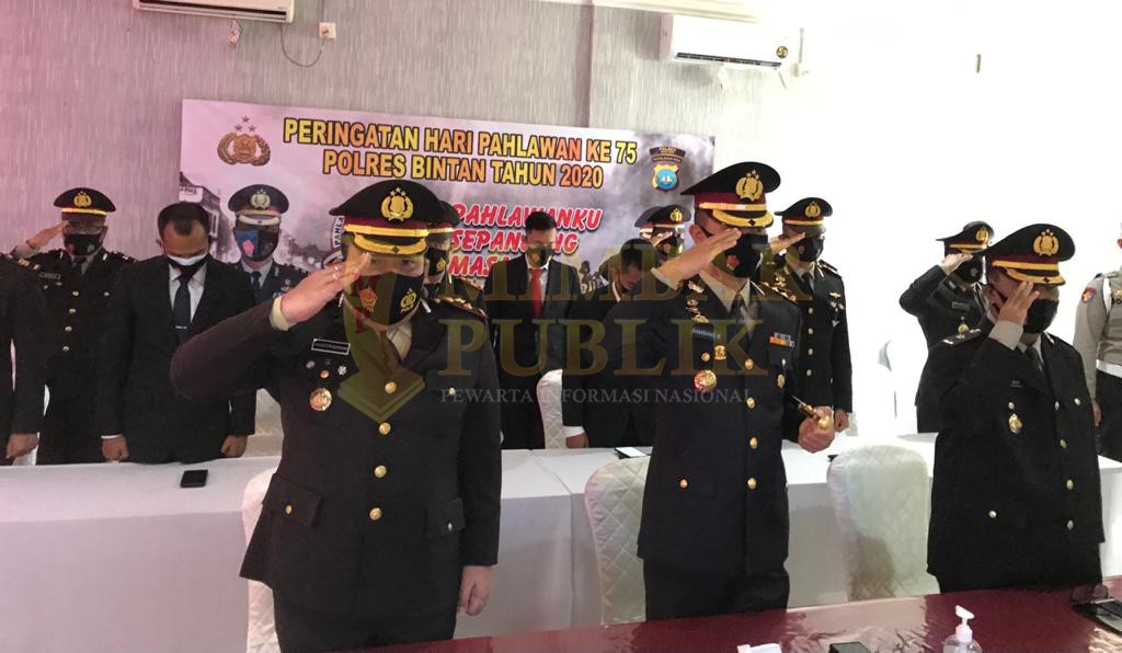 Kapolres Bintan menyampaikan bahwa dilaksanakannya upacara ziarah nasional dalam rangka memperingati hari pahlawan Nasional 10 November tahun 2020, Upacara Ziarah Nasional tersebut diikuti secara virtual dari TPMNU Kalibata Jakarta sebagai Instruktur Upacara (Irup) Presiden Republik Indonesia, Walaupun kegiatan upacara dilakukan secara virtual di masa pandemi Covid-19 ini, Upacara Ziarah Nasional tetap berlangsung secara khidmat dan tidak kehilangan makna.”