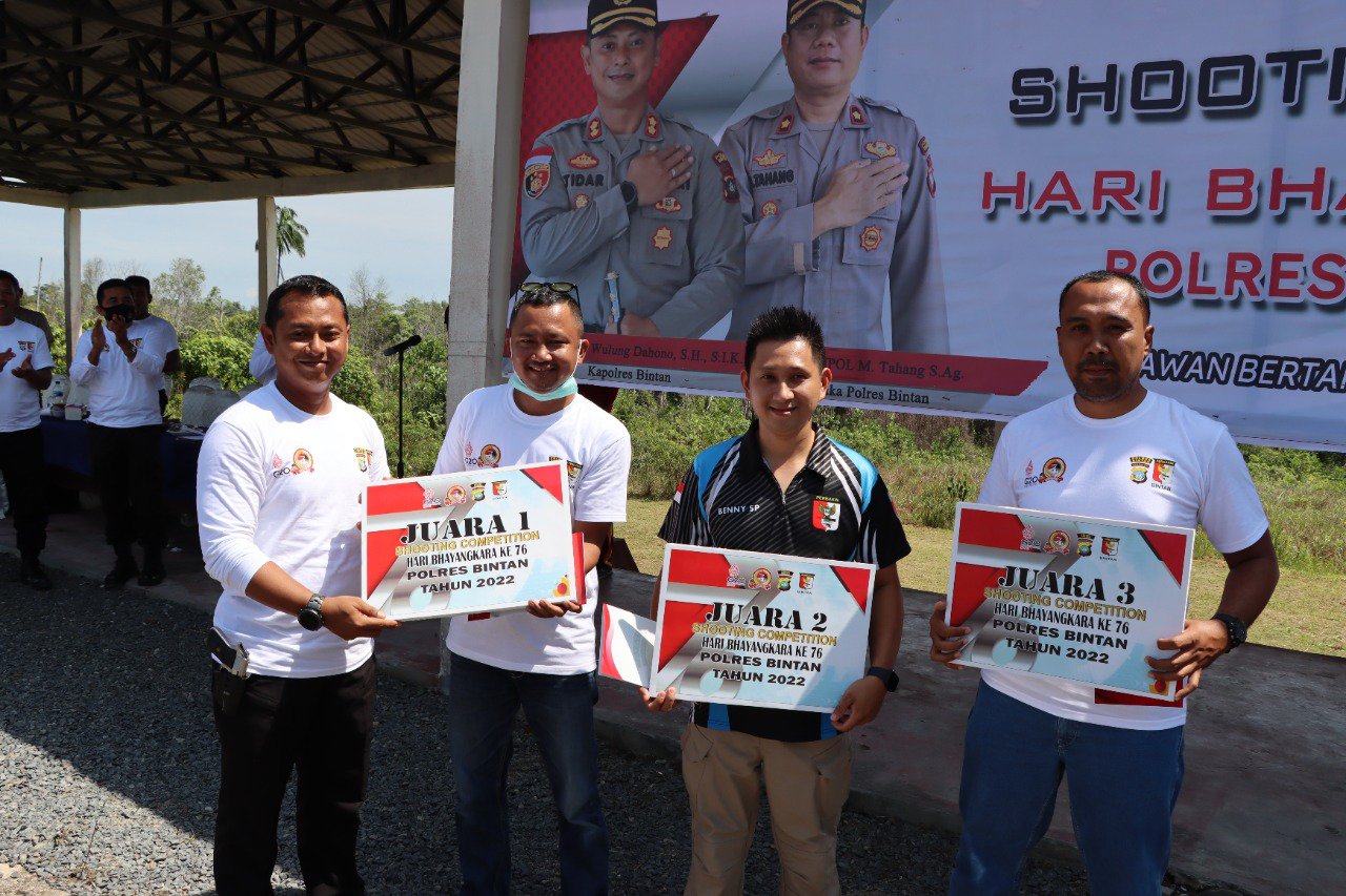 Sebagai pemenang dalam Shooting Competition tersebut dari Media dijuarai saudara Febriansyah dari jurnalis elektronik RRI Tanjungpinang, dari kelompok Perbakin saudara Benny, dan dari kelompok Polri IPDA Zulfandi, masing-masing pemenang mendapatkan uang pembinaan dari Kapolres Bintan.
