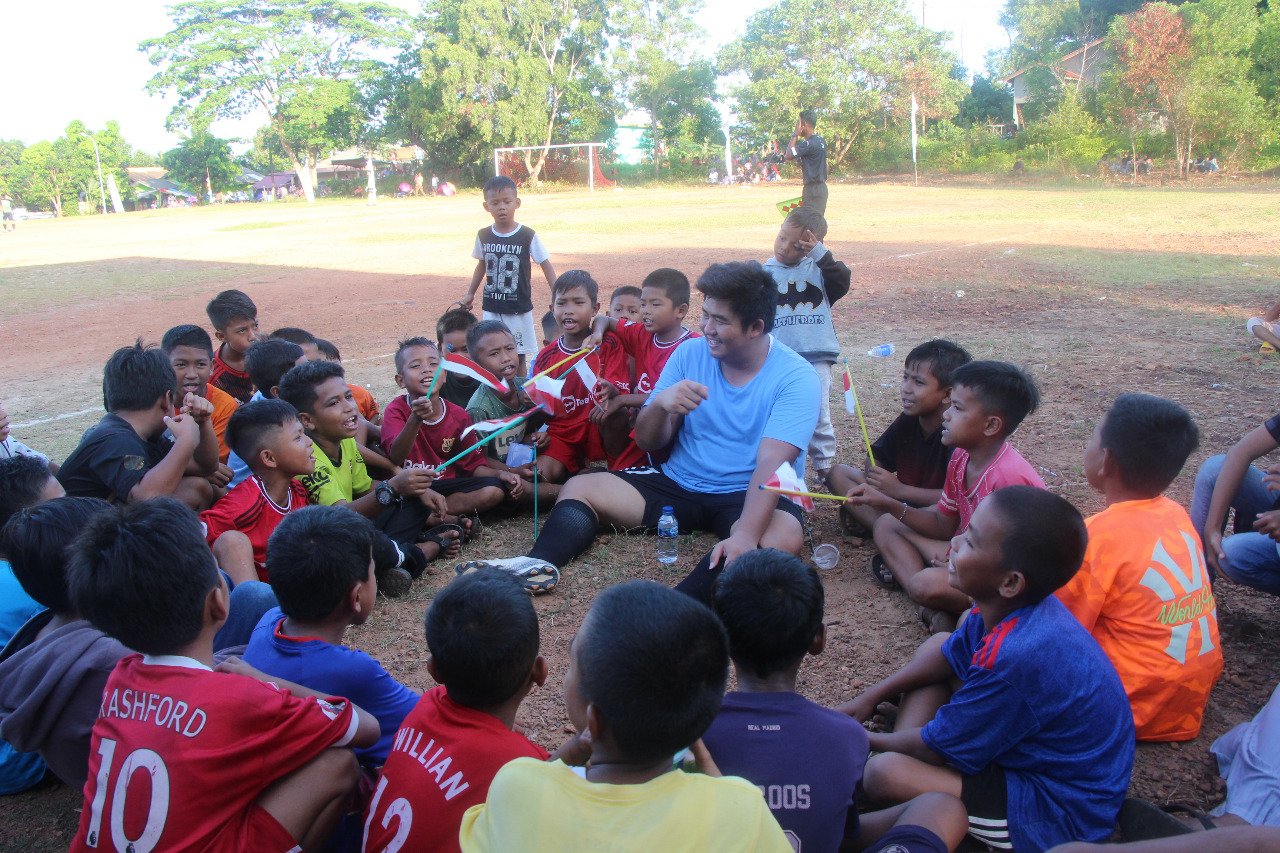 Plt Bupati Bintan Roby Kurniawan bersama anak-anak di pinggir lapangan. (Foto: Diskominfo)