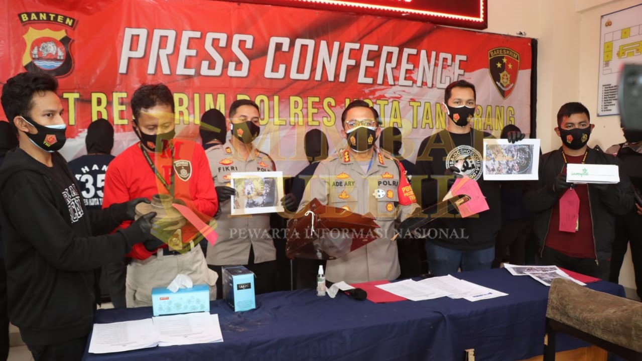 “5 dari 9 tersangka dijerat juga dengan Pasal mengenai perbuatan melawan petugas yang sedang melaksanakan tugas yang sah menurut Undang-Undang,” kata Kapolresta Tangerang Kombes Pol Ade Ary Syam Indradi saat konferensi pers di Mapolresta Tangerang, Minggu (11/10/2020).