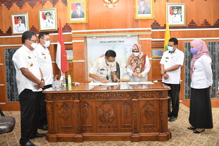 KEPRIBETTER.COM, Lampung Timur – Bupati Zaiful Bokhari Melakukan Penandatanganan Berita Acara Serah Terima dan Naskah Hibah Barang Milik Negara (BMN) Antara Direktorat Jendral Cipta Karya Kementrian Pekerjaan Umum dan Perumahan Rakyat (Dirjen Cipka PUPR) dengan Pemerintah Kabupaten Lampung Timur bertempat lokasi di Ruang Kerja Kantor Bupati Sukadana, Lampung Timur pada Rabu, 13/01/2021.
