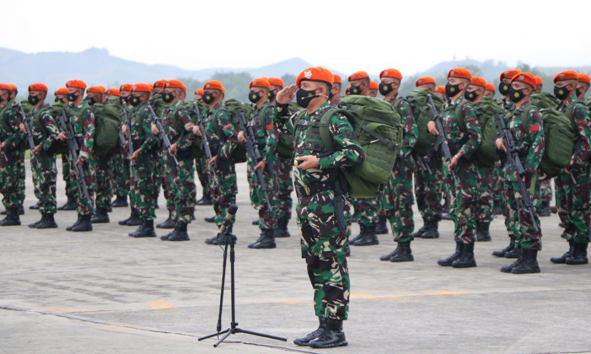 KEPRIBETTER.COM, Jayapura – Panglima Kodam XVII/ Cenderawasih Mayjen TNI Teguh Muji Angkasa memimpin Upacara Pelepasan Satgas Kopasgat BKO Pangdam XVII/Cend, di Apron Base Ops Lanud Silas Papare, Jayapura, Selasa (15/2).