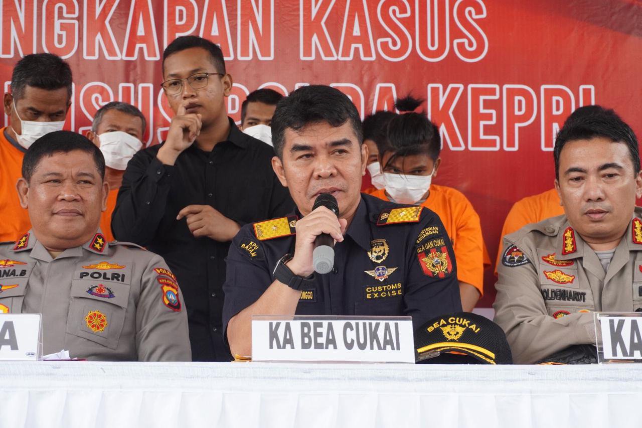 Hal tersebut disampaikan oleh Kapolda Kepri Irjen Pol. Drs. Tabana Bangun, M.Si didampingi Dirreskrimsus Polda Kepri Kombes Pol. Nasriadi, S.H., S.I.K., M.H., Kabidhumas Polda Kepri Kombes Pol. Harry Goldenhardt S, S.I.K., M.Si dan Kepala Bea Cuka Kota Batam, Ambang Priyonggo, S.IP., MPA. Saat Konferensi Pers bertempat di depan Lobby Utama Mapolda Kepri, Rabu (15/2/2023).
