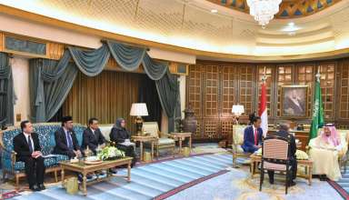 Turut mendampingi Presiden Jokowi dan Ibu Iriana antara lain Menteri Luar Negeri Retno Marsudi, Kepala Staf Kepresidenan Moeldoko, Duta Besar Indonesia untuk Kerajaan Arab Saudi Agus Maftuh Abegebriel. (:)