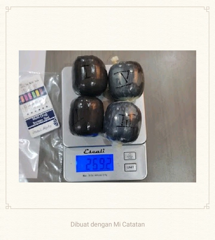 Bungkusan plastik yang dibawa oleh tersangka tersebut masing-masing dibuka untuk diambil sampel dan diuji menggunakan narcotest untuk memastikan isi dari plastik tersebut. Dari hasil narcotest diketahui bahwa isi bungkusan plastik tersebut positif mengandung narkotika berupa sabu/methamphetamine.