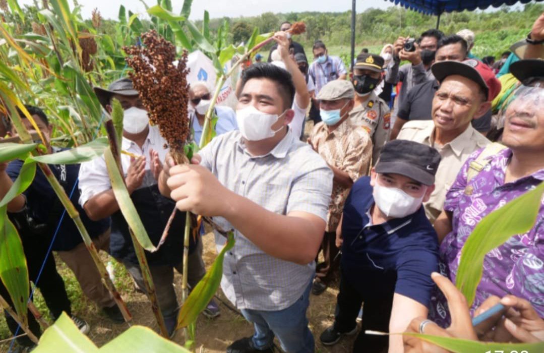 Plt Bupati Bintan Roby Kurniawan Tinjau ladang Sorgum di KM 24 Toapayah Asri, Bintan, Minggu (16/1). Foto: Pemkab Bintan