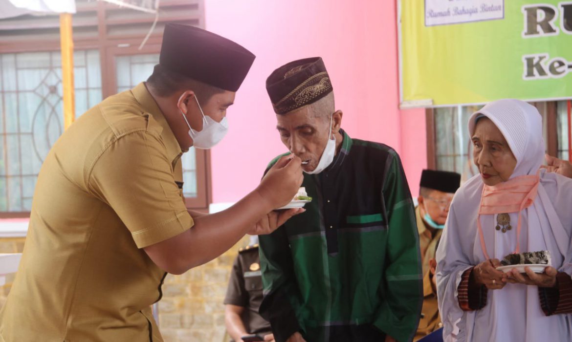 Turut hadir Ketua PKK yang juga Pembina Rumah Bahagia Bintan Hj. Dewi Kumalasari, syukuran kali ini mengusung tema kebahagiaan bagi para lansia.