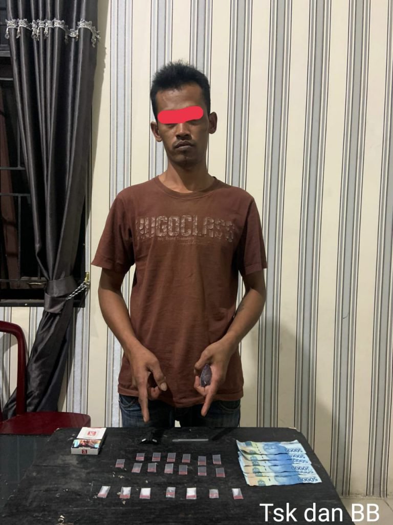 Serta ditemukan Uang Tunai Sebesar Rp. 300.000,- (Tiga Ratus Ribu Rupiah) yang diduga uang hasil dari penjualan shabu shabu.miliknya, Dari penangkapan tersebut petugas berhasil mengamankan barang bukti 7 (tujuh) paket plastik klip merah berisikan Kristal putih diduga Narkotika gol. I jenis shabu – Shaabu setelah ditimbang keseluruhan berat bruto 1,86 (satu koma delapan enam) gram.