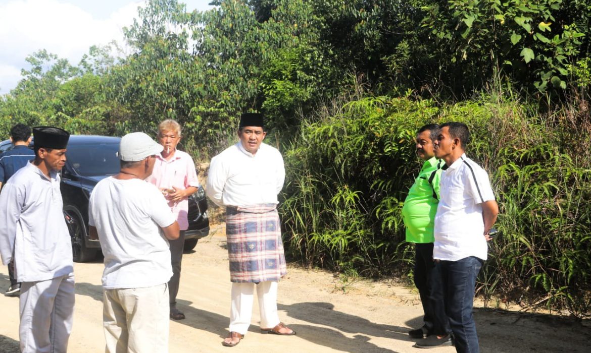 Plt Bupati Bintan Roby Kurniawan meninjau lokasi yang akan diaspal, Selasa (17/5). Foto: Diskominfo
