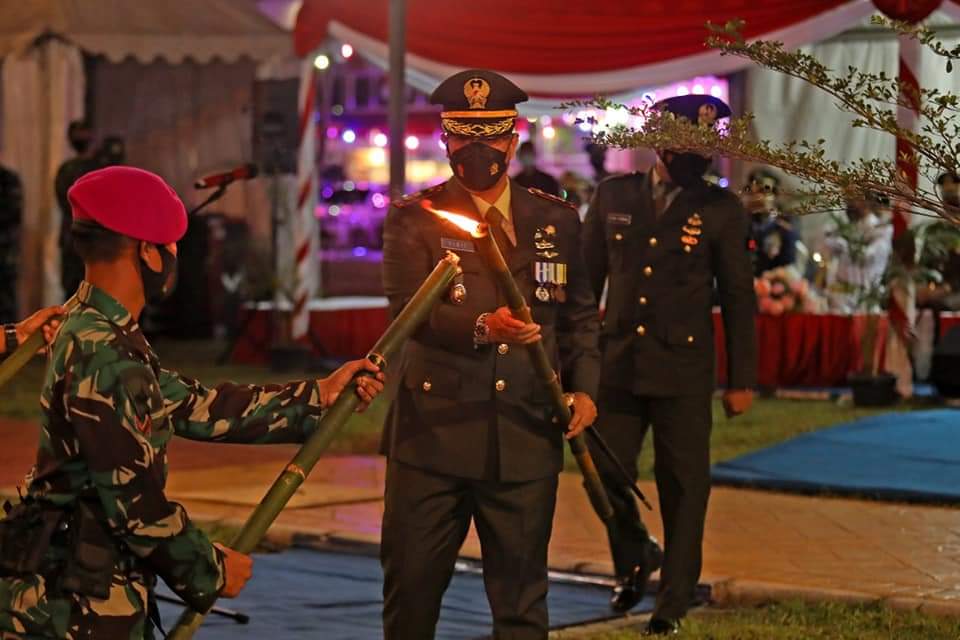 KEPRIBETTER.COM, BATAM – Upacara Penetapan Waktu (Taptu) dan pawai obor merupakan tradisi setiap menyambut Hari Kemerdekaan. Di tingkat Kota Batam, kegiatan ini dipusatkan di Dataran Engku Hamidah, Senin (16/8/2021) malam.