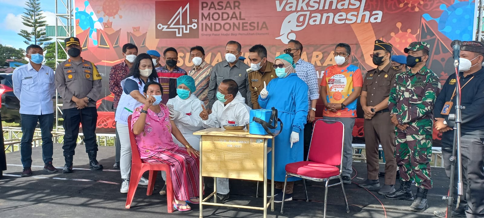 jangan takut ada isu bahwa vaksin dosis kedua tidak tersedia. Lebih lanjut, Agus juga mengucapkan terima kasih atas seluruh pihak yang mendukung acara ini dan berharap vaksinasi pasar modal dapat mempercepat herd immunity di Sumatera Utara.