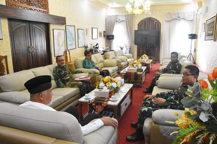 Wali Kota Padang H.Mahyeldi Ansharullah menerima kunjungan kerja Komandan Pangkalan Utama TNI Angkatan Laut (Danlantamal) Laksamana Pertama TNI Hargianto. Pertemuan tersebut berlangsung di Ruang VIP Rumah Dinas, Rabu (16/12/2020)