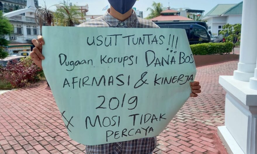 Mahasiswa menuntut Kejari Karimun mengusut dugaan penggelapan dana Bantuan Operasional Sekolah BOS tahun 2019 di Dinas Pendidikan Kabupaten Karimun.