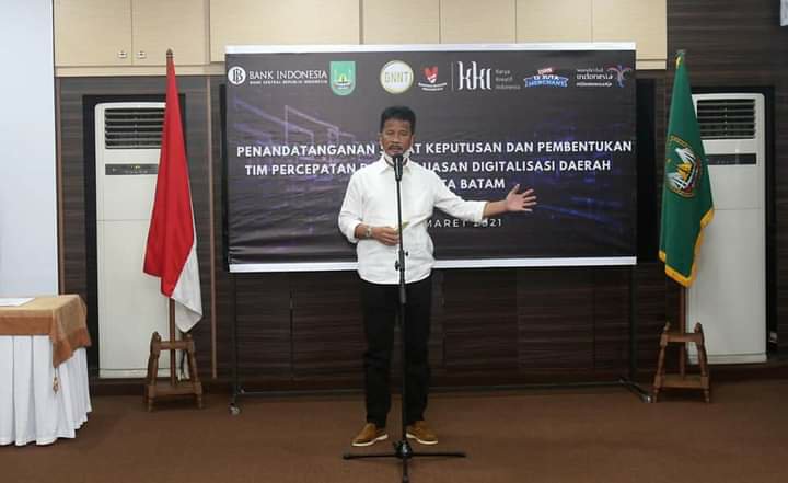 Hal itu ditegaskan Kepala Kantor Perwakilan (KPw) Bank Indonesia (BI) Kepri, Musni Hardi Kasuma Atmaja saat penandatanganan Surat Keputusan (SK) Wali Kota Batam dalam pembentukan Tim Percepatan dan Perluasan Digitalisasi Daerah (TP2DD) di Kantor Wali Kota Batam, Jumat (19/3/2021).