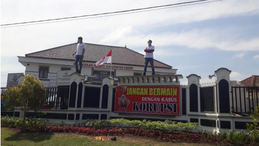 KEPRIBETTER.COM, Kediri – Sesuai janjinya, massa Ikatan Pemuda Kediri (IPK) mendatangi Kantor Kejaksaan Negeri Kabupaten Kediri menggelar aksi, Jumat (17/09). Sebelumnya, mereka sempat memasang satu spanduk di pintu Kantor Pemerintah Kabupaten Kediri ditujukan kepada Bupati dan Ketua DPRD. Tujuannya Kepala Kominfo Krisna Setiawan beserta semua terlibat untuk dijebloskan ke dalam tempat tahanan.