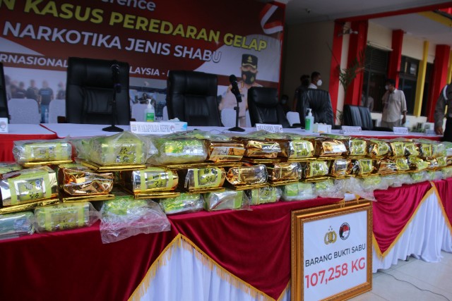 Jika sabu 107,258 kg itu dinominalkan rupiah, maka ada sekitar Rp 128 miliar dengan asumsi harga narkotika jenis Shabu di pasaran Rp 1,5 juta per gram.