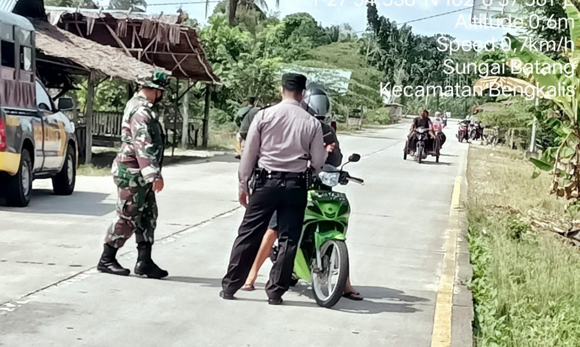 Babinsa Serda Japri Rohim salah satu prajurit TNI AD yang bertugas di Koramil 01/Bengkalis bersama Tim PPKM Desa Sungai Batang menggelar operasi tersebut Di Desa Sungai Batang Kecamatan Bengkalis Kabupaten Bengkalis. Rabu (09/03/22)