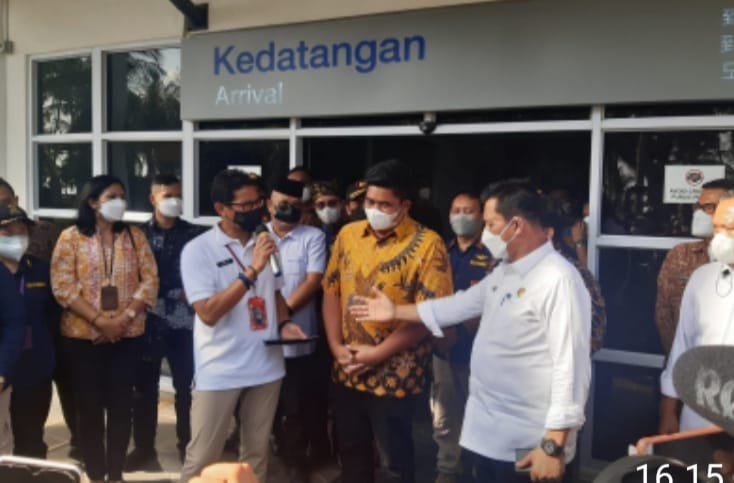 KEPRIBETTER.COM, Bintan – Rombongan Menteri Pariwisata dan Ekonomi Kreatif Republik Indonesia (Menparekraf RI) Sandiaga Uno saat meninjau kawasan pariwisata Lagoi dan meninjau lokasi pelabuhan Bandara Bentan Telani (BBT) Lagoi, sebagai pintu masuknya wisatawan berkunjung je Lagoi, sebagai persiapan Travel Bubble yang dimulai 24 Januari 2022
