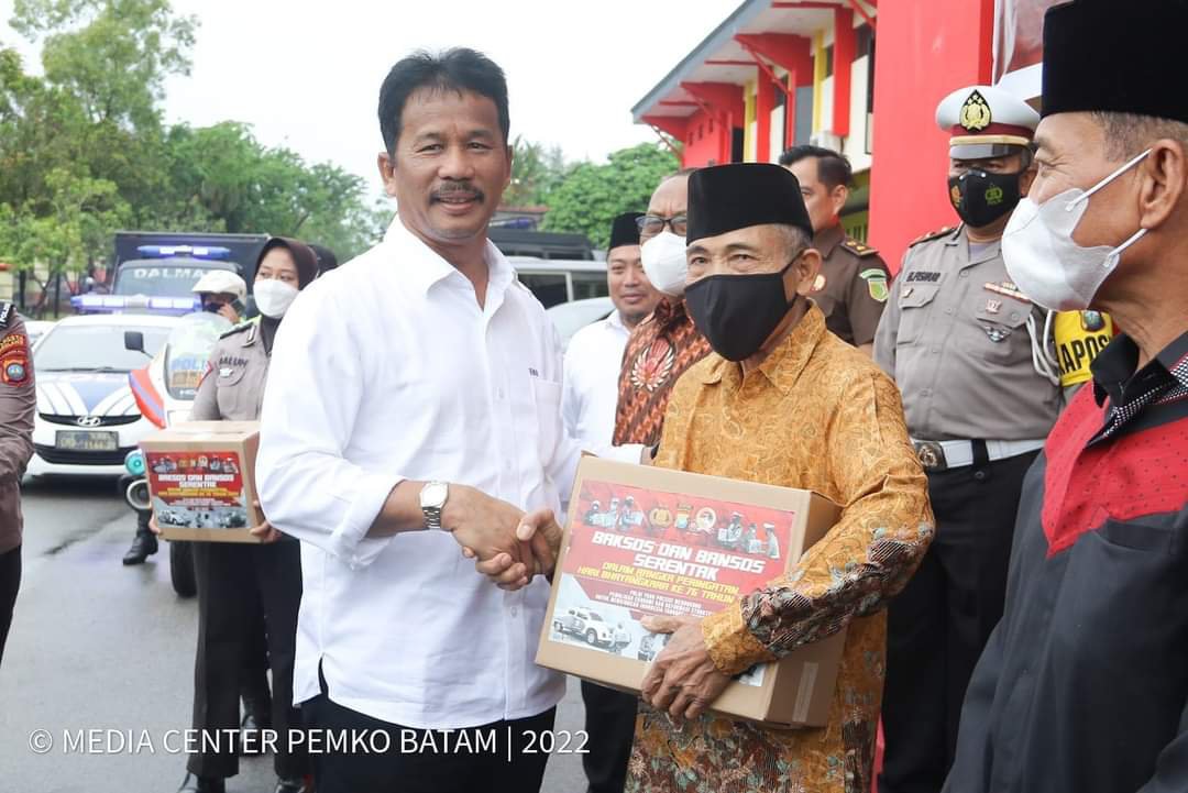 Wali Kota Batam Muhammad Rudi menghadiri pembagian sembako hari Bhayangkara ke-76, Senin (20/6). Foto: Diskominfo Batam