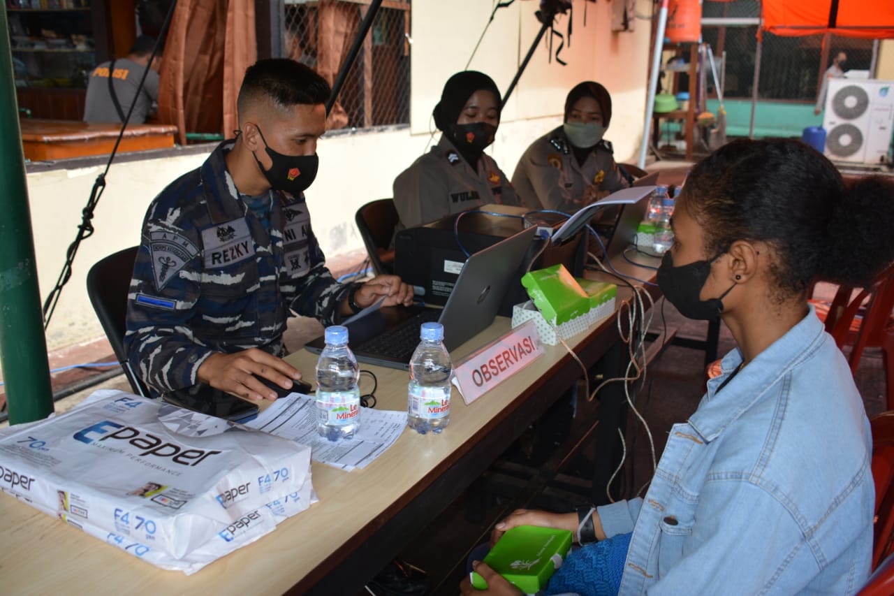 Bergabung dengan tim vaksinator lainnya, Bidokkes Polda Papua sebagai tuan rumah serta tim Vaksinator dari Kesdam XVII/Cenderawasih dan Dinkes Provinsi Papua terus menggenjot capaian 70% masyarakat Kota Jayapura tervaksin.