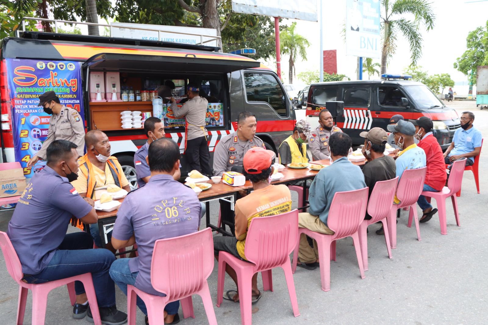 KEPRIBETTER.COM, Karimun – Kapolres Karimun AKBP Tony Pantano, SIK, SH. yang di dampingi Kasat Binmas Akp Rizal Rahim SH, kembali membuat inovasi melalui program sarapan keliling (sarling) di jalan trikora Kecamatan Karimun Kabupaten Karimun untuk membagikan paket sarapan pagi (23/02/2022).