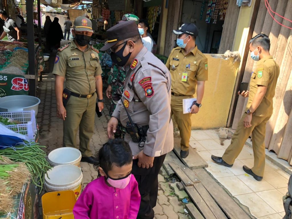 Untuk itu, Wakapolsek Nongsa, AKP Sofyan langsung turun kelapangan memonitoring penerapan protokol kesehatan di pasar dan tempat keramaian lainnya.
