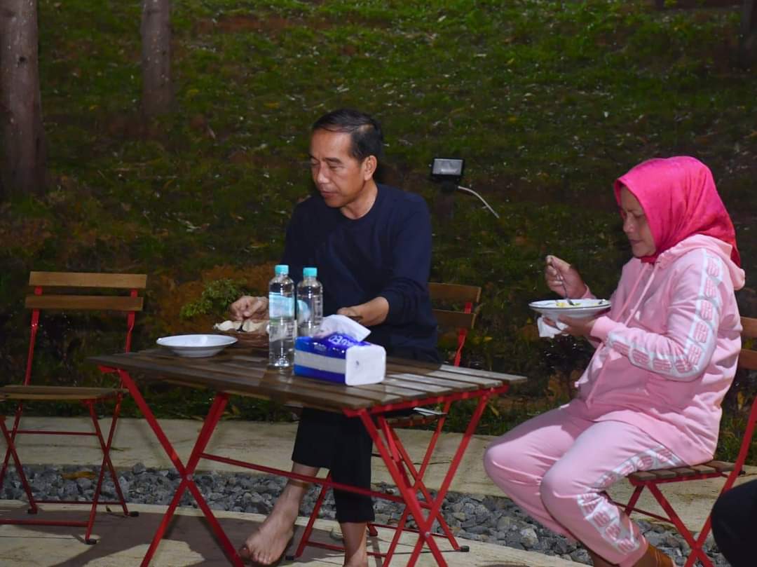 KEPRIBETTER.COM- Dibawah langit malam Ibu Kota Nusantara (IKN), Presiden Joko Widodo dan Ibu Iriana Joko Widodo bersama para menteri makan malam di Kawasan Inti Pusat Pemerintahan (KIPP) Ibu Kota Nusantara (IKN), Kabupaten Penajam Paser Utara, pada Kamis, 23 Februari 2023. Terlihat kehangatan Presiden dan Ibu Iriana bersama para menteri menyantap hidangan sederhana sambil saling berbincang.